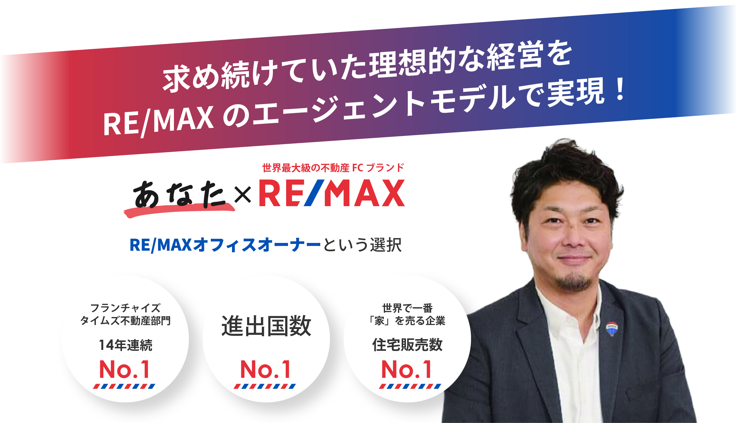 以前は「社長」と「社員」という関係性だからうまくいかなかった、エージェントと加盟店 オーナーの立場であれば、対等のパートナー関係であり、同じ方向を見て一緒に仕事ができるかもしれない、これこそ 自分の理想の働き方がRE/MAXにはあるのではないかと思い、加盟を決意しました。